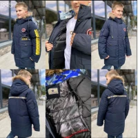 Зимова куртка-парка для хлопчика-підлітка оброблена водовідштовхувальним просоченням. Куртка застібається на блискавку, блискавка прикрита вітрозахисною планкою (на липучках), застібається високо закриваючи шию. У рукавах є в“язані манжети, що прилягають до руки і запобігають потраплянню холодного повітря. Попереду є кишені (на липучці). Наповнювач – синтепон. Фасон куртки-парки – видовжений, прямий силует. Капюшон глибокий, прикрашений пухом зі штучного хутра, Комір - стійка, високий, капюшон цілісний глибокий, на затяжці. Зимова куртка-парку на хлопчика пошита з водо- та вітрозахисної бар“єрної плащечки. Підійде для холодної зими. Вид виробу: куртка-парка Наявність кишень: так Водовідштовхувальна мембрана: так Водовідштовхувальне просочення: так Стан: новий. Виробник: Угорщина Розміри в наявності: розмір - 116 см - на 6-7 років. розмір - 122 см - на 7-8 років. розмір - 128 см - на 8-9 років. розмір - 134 см - на 9-10 років. Вкажіть потрібний розмір у коментарях до замовлення. Є можливість зробити виміри.